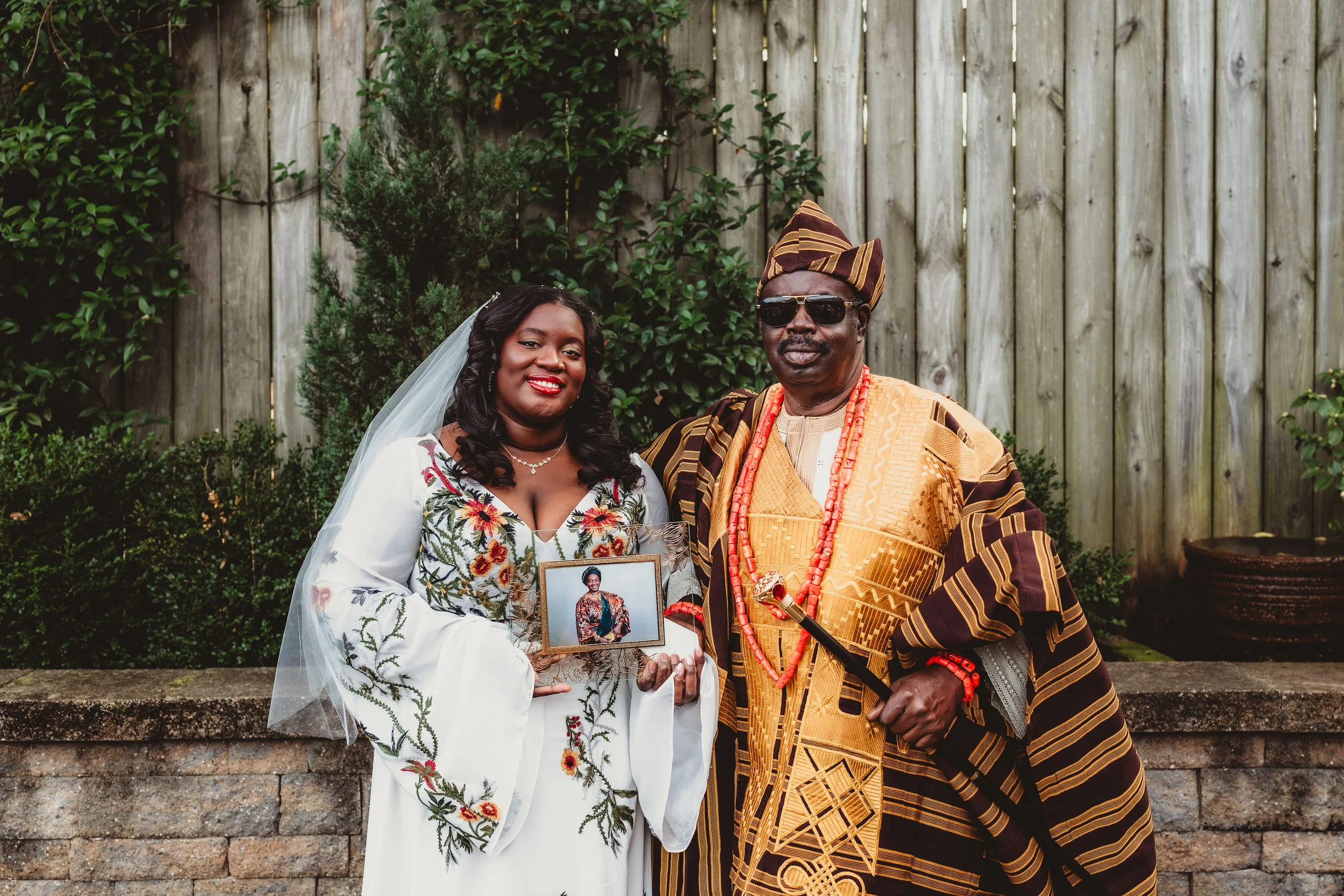 Dasola + Her dad with a picture of her mom on her wedding day. Photo taken by Rose Trail Images